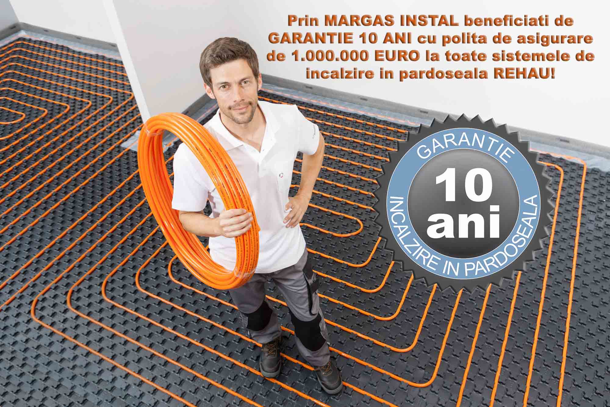 10 ani garantie pentru sistemele de incalzire in pardoseala si polita de asigurare de 1.000.000 euro.