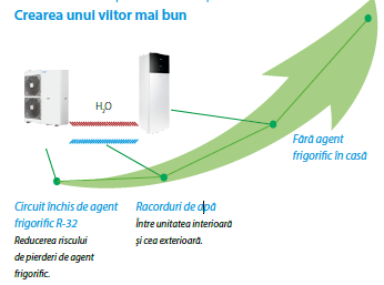 Datorita utilizarii agentului frigorific R-32, unitatea atinge cele mai inalte performante energetice, reprezentate prin cele mai bune clase energetice.